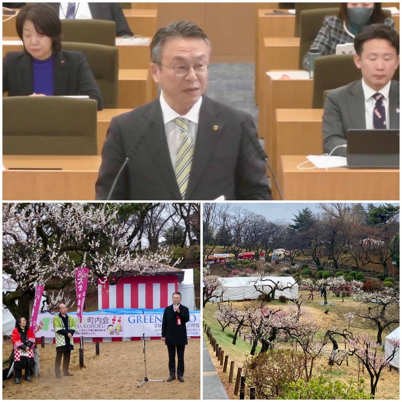 三連休は底冷えする天候でしたが、梅は満開でした。金曜日の開会式では、区の議員団を代表して挨拶に立ちました。